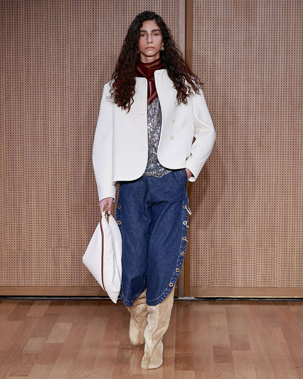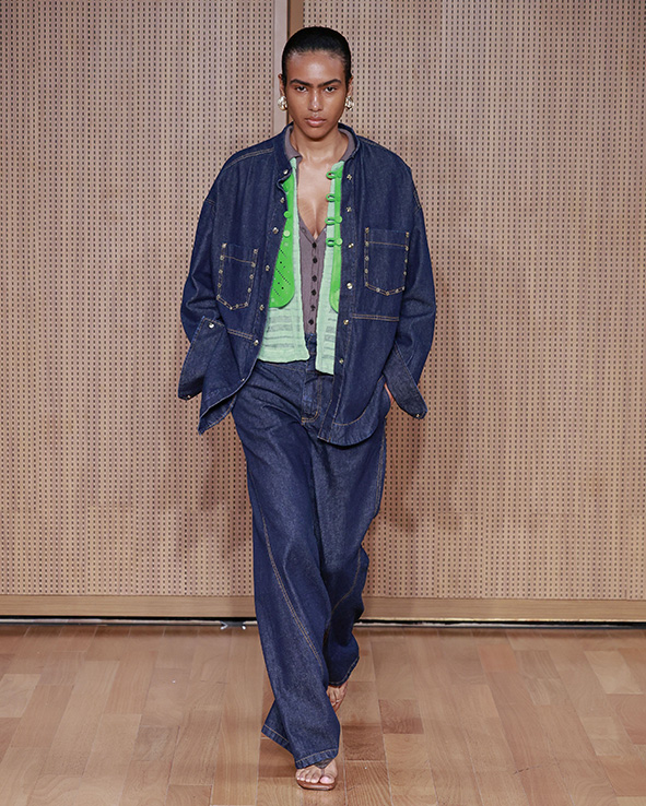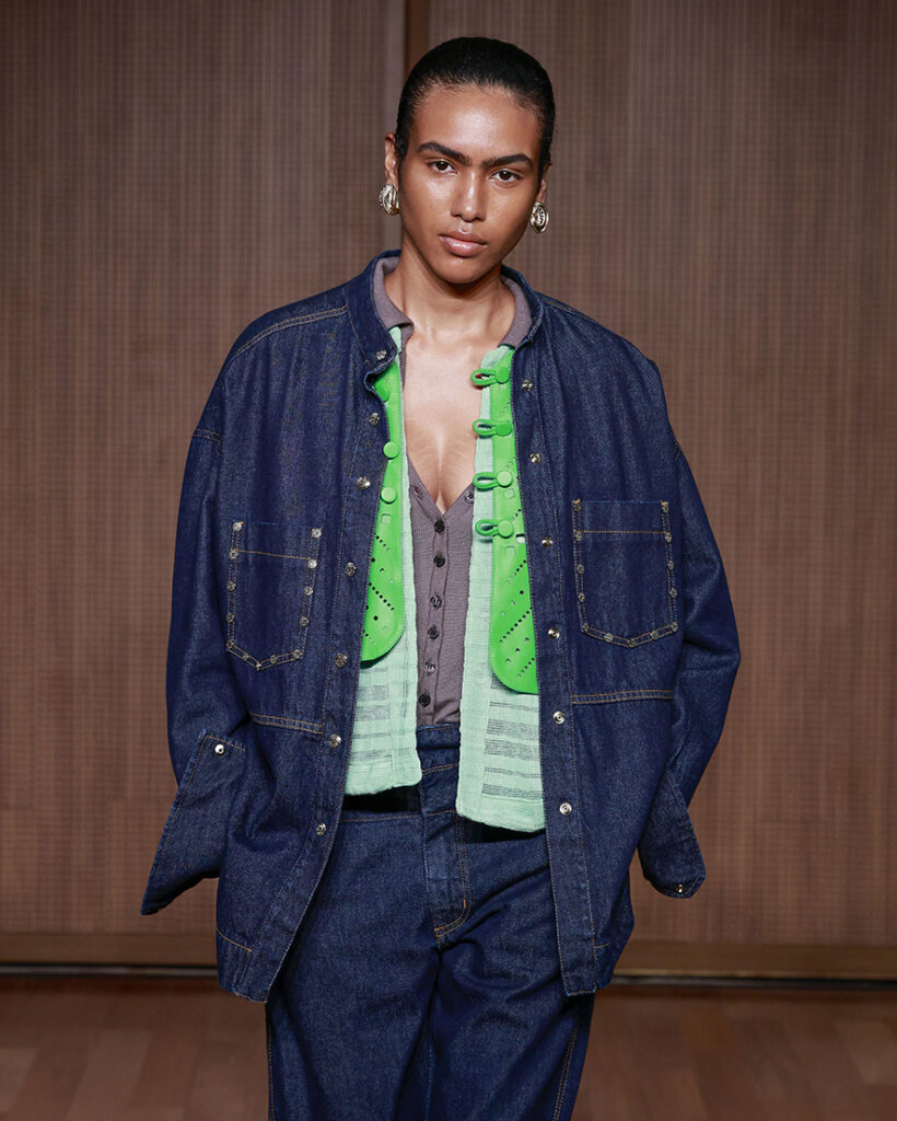 Além disso, a coleção reafirma o compromisso da Lilly Sarti com o domínio artesanal, com todos os aviamentos desenvolvidos internamente, garantindo autenticidade e qualidade em cada detalhe. Este desfile é um exemplo brilhante de como o denim, um item básico, pode ser reinterpretado de forma inovadora, destacando a versatilidade da marca e sua incessante busca por inovação, ao mesmo tempo em que promove um futuro mais sustentável e consciente.