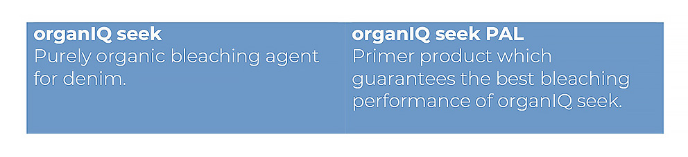 O branqueamento com organIQ seek é possível em banho-maria (por exemplo, tecnologias de baixo liqor – LLT com proporções de licor de até 1:3), em técnicas de nebulização/aplicação por névoa e em aplicação de branqueamento por pulverização como substituto do PP. Também são viáveis métodos de aplicação com espuma e outros métodos de aplicação artesanal. Devido a isso, é possível obter uma ampla gama de efeitos de branqueamento, desde o mais plano até o de altíssimo contraste.