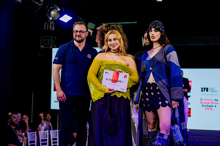 Com “O jeans escuta”, Clara Albuquerque conquistou o segundo lugar. Aluna egressa do Senac Recife, ela ressalta a importância do concurso para quem está iniciando a carreira. “Estar aqui, no Agreste, mas com essa projeção nacional, faz toda a diferença pra gente que está começando. A moda é um mercado difícil, que nem sempre abre portas com facilidade, e o Brasil Fashion Designers cumpre exatamente esse papel: dar visibilidade e colocar nossos nomes no cenário. Eu saio daqui muito feliz, muito motivada e, principalmente, ansiosa para transformar tudo isso em novas oportunidades”, pontuou.